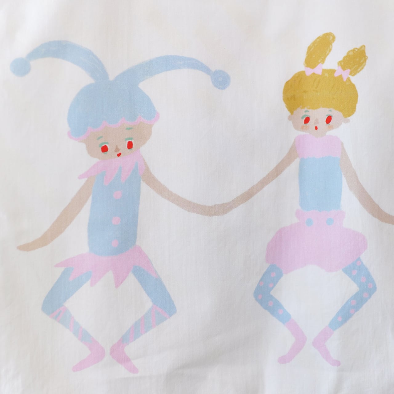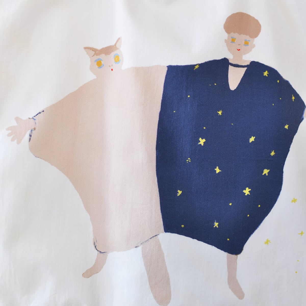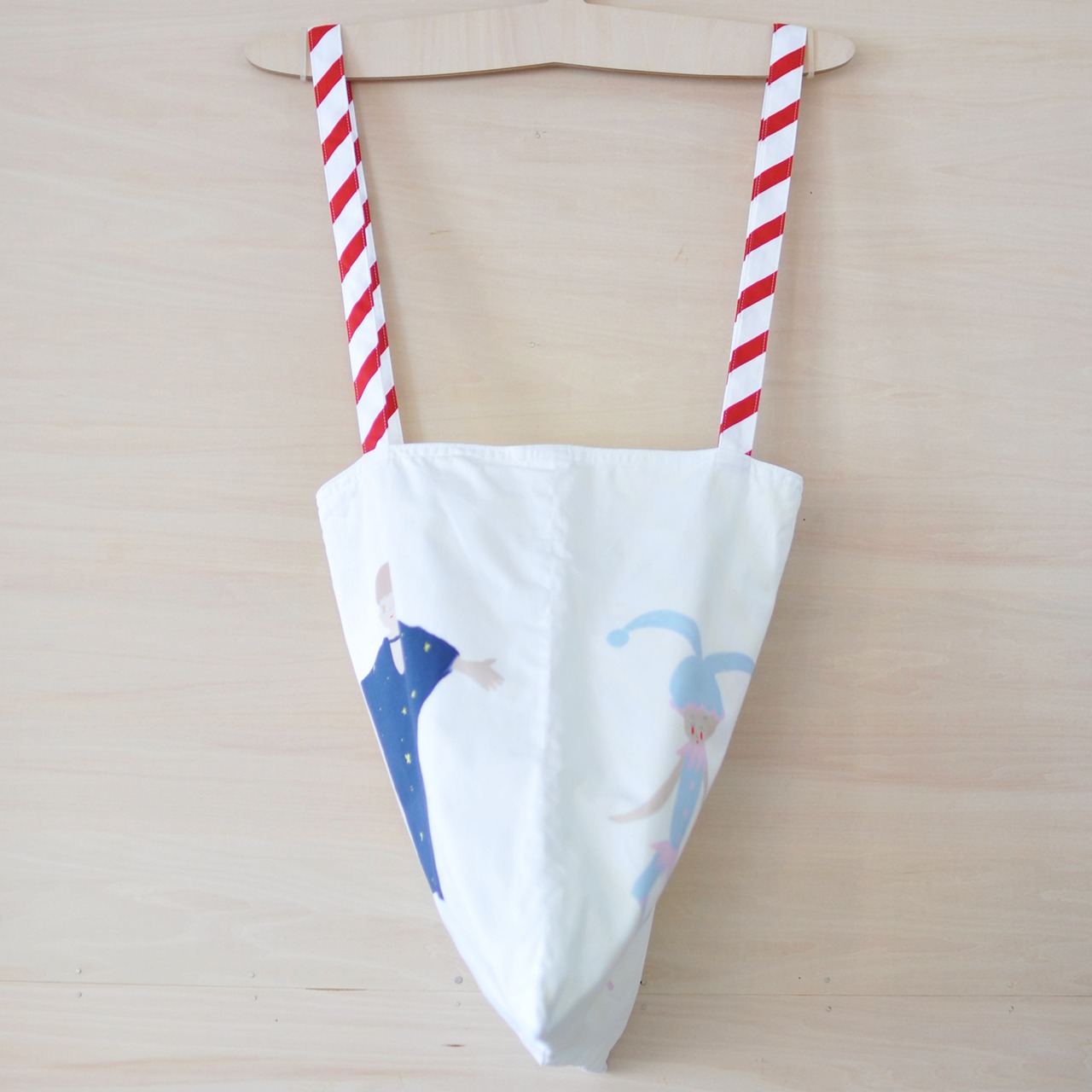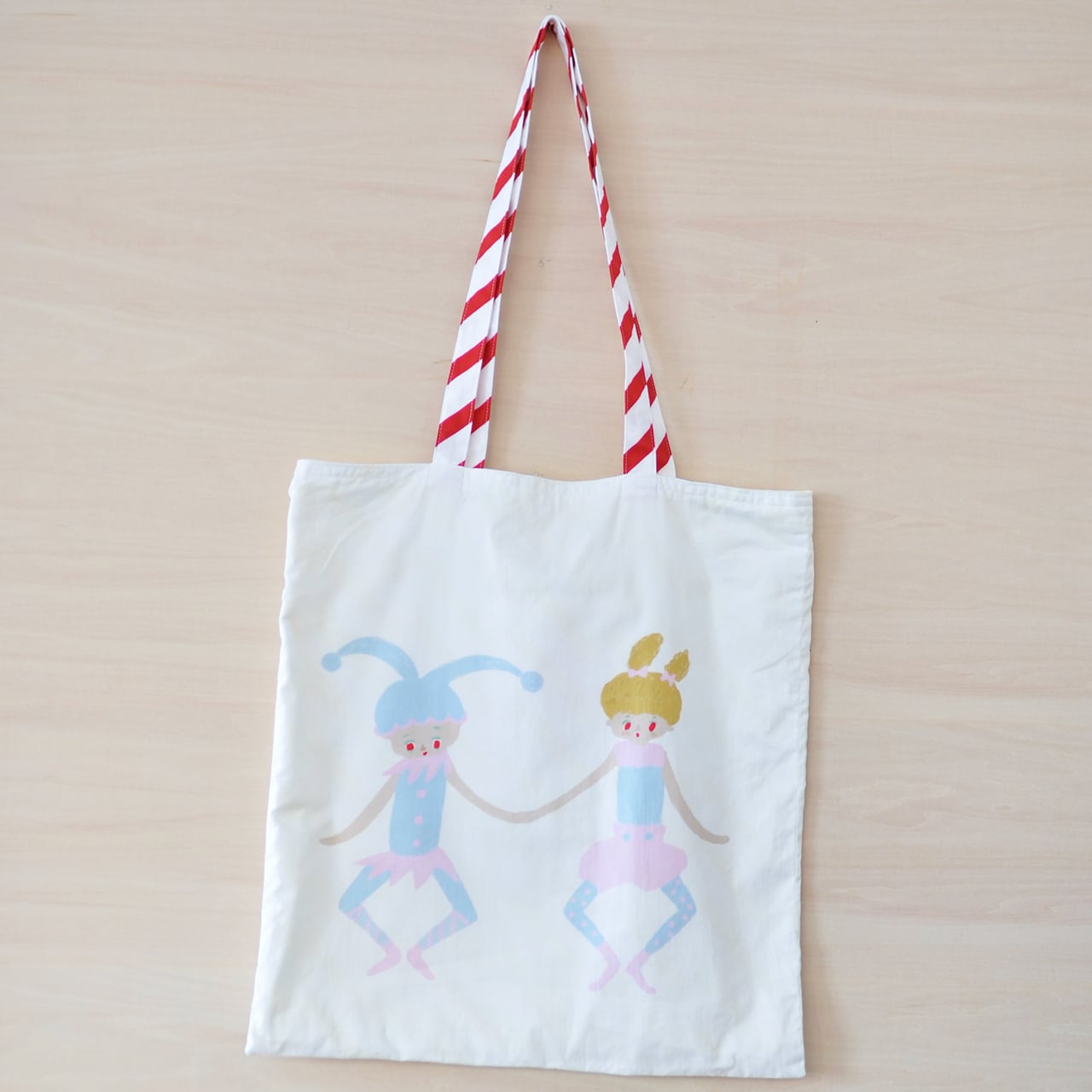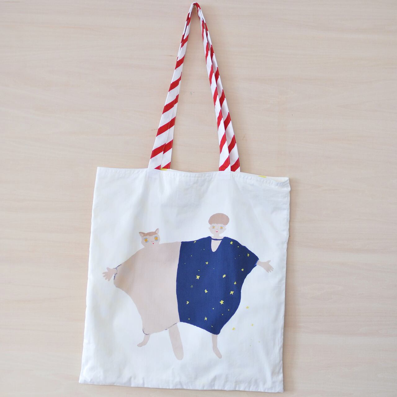 鏡で遊ぶ動物たちのイラストは40種。その中から2種を選んでもらい会期後にバッグに仕立てました。